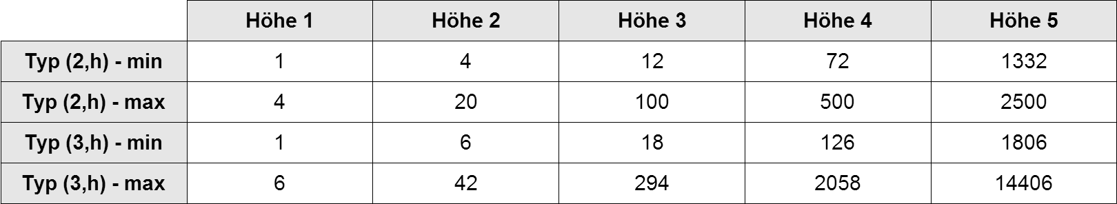 – es muss über die Höhe 3, für jeden Knoten k+1 Kinder geben