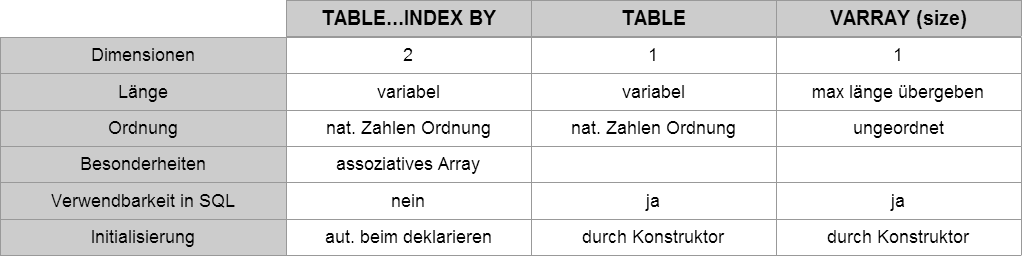 Kollektionen in PL/SQL