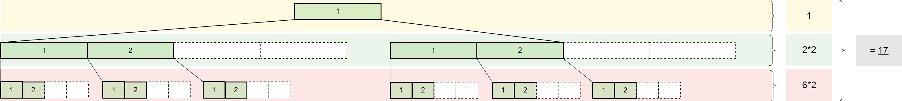 2*2+2 = 6 -> 6 Knoten auf der höhe 3